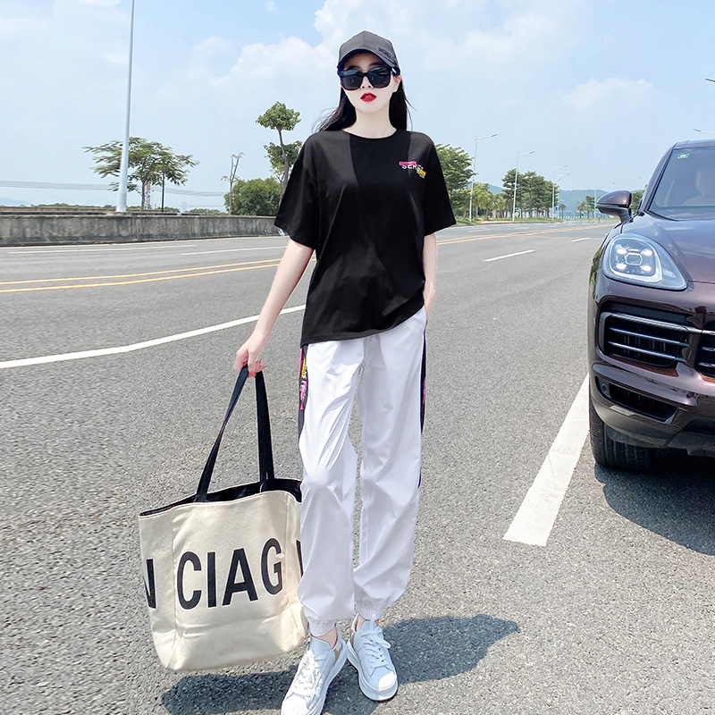Tide Cards Casual Fashion Suit Women 2021 Summer New Suit Foreign Palate Slim Net Red Loose Movement Two Suits