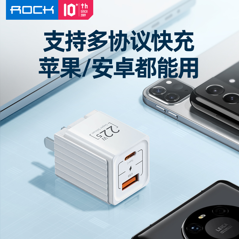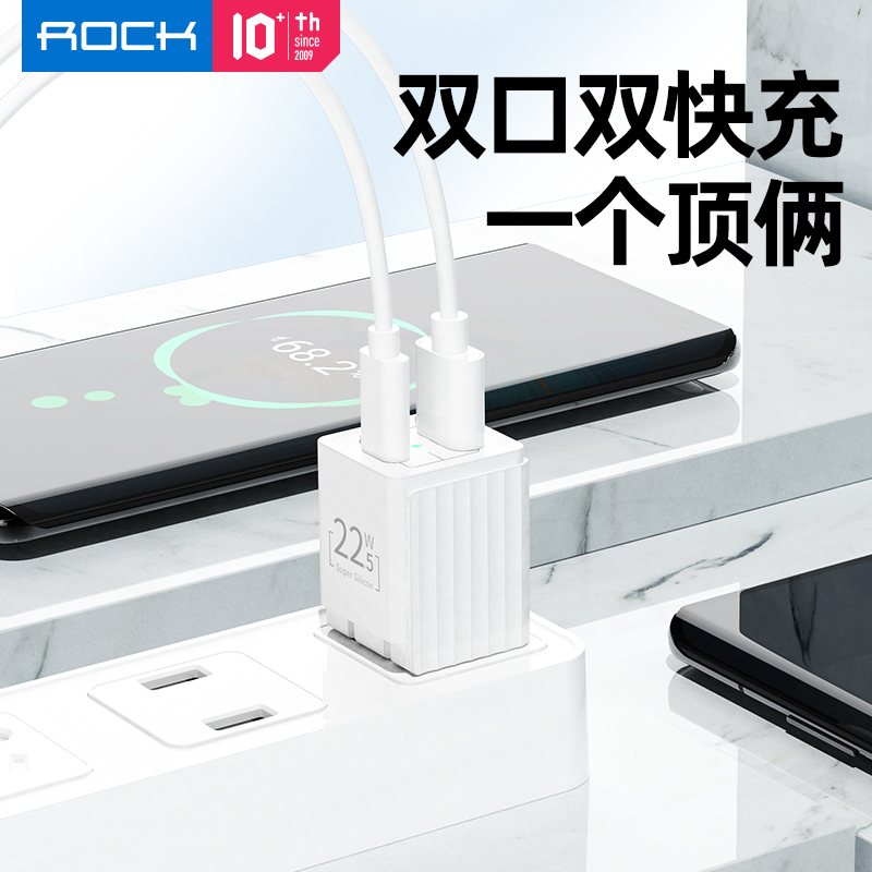 ROCK applicable Huawei charger Xiaomi 11 super fast charging 5A fast charging head 22 5W glory 10V20 data line mate40pro mobile phone charging head P30P20P