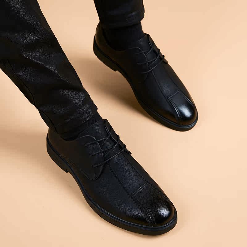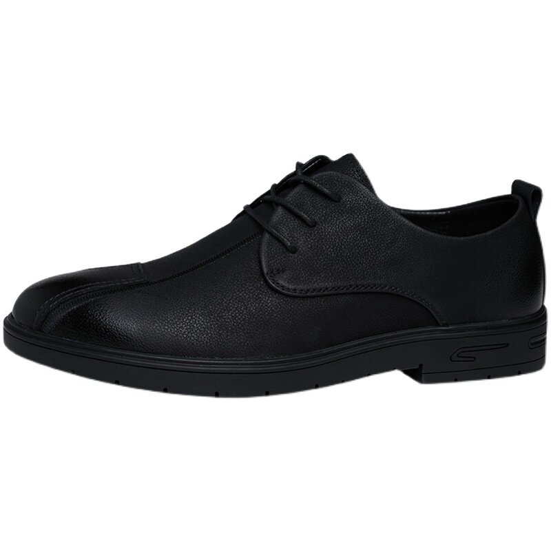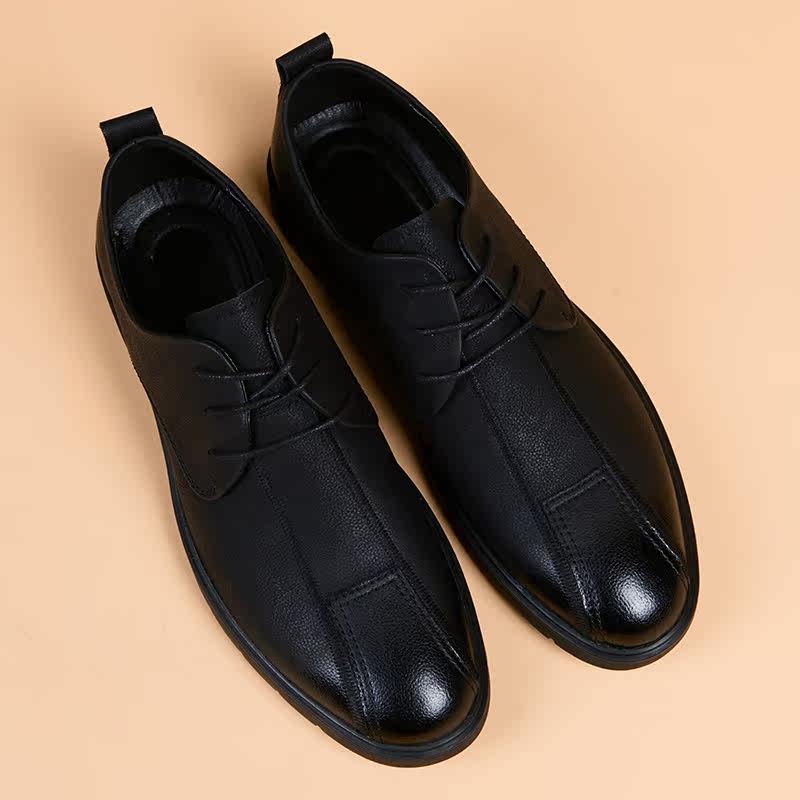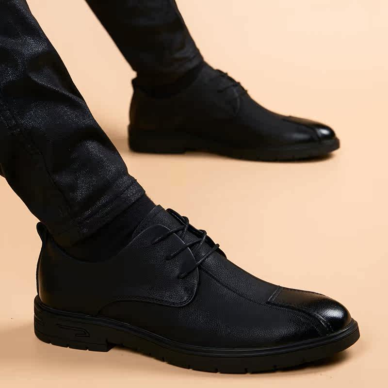 Casual leather shoes Men's youth Korean version Inron trend Business Fashion Shoes Black heightening genuine leather breathable round-head shoes