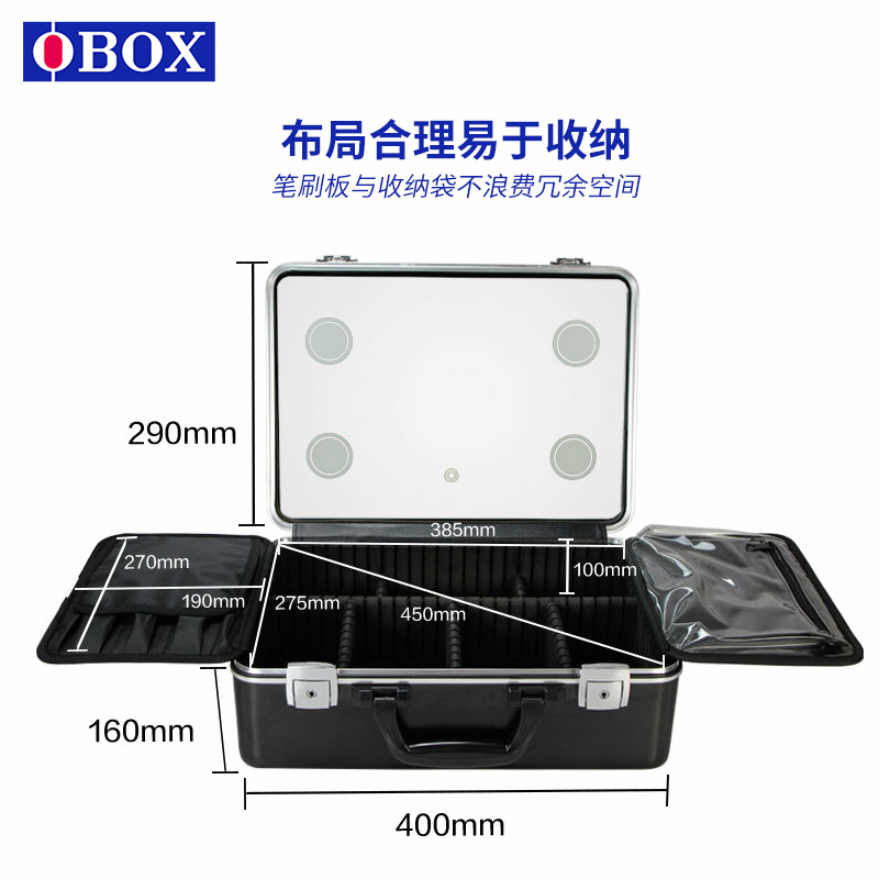 OBOX16 inch professional makeup artist special makeup case with mirror with LED light veins embroidered beauty nail handbag-Taobao