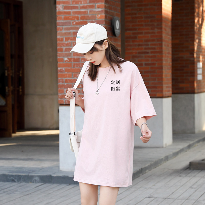 Customized t-shirt mid-length pure cotton drop-shoulder clothes cultural shirt ins style boudoir honey outfit with picture and logo printing minimum order of one piece