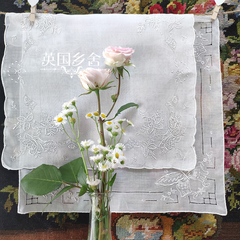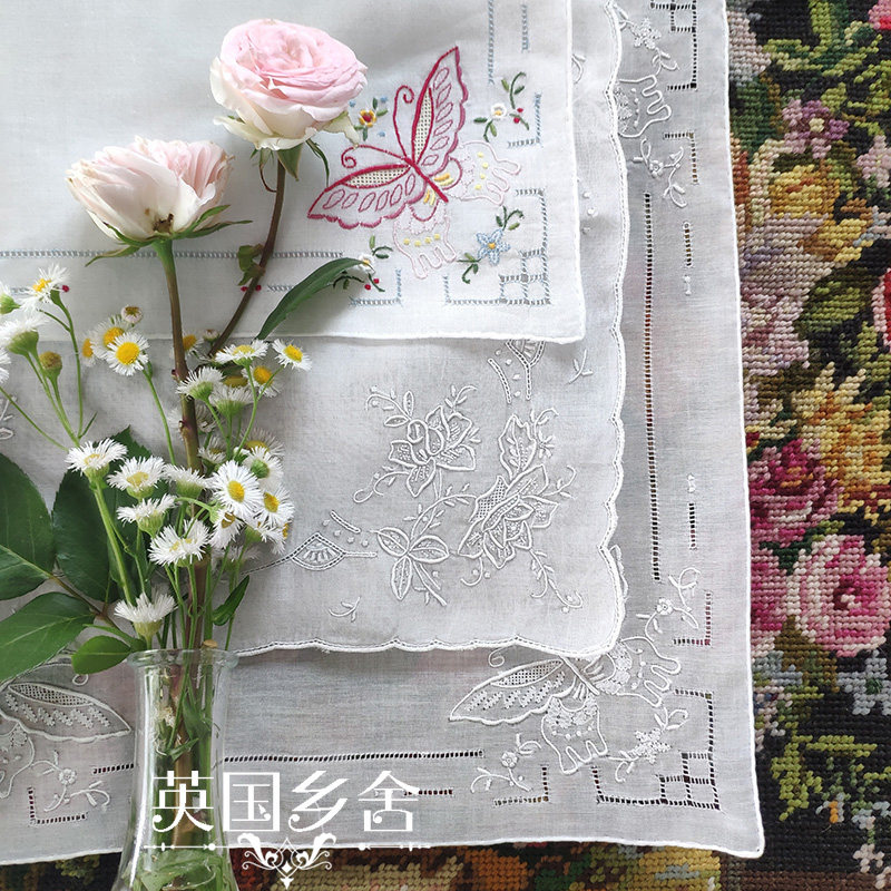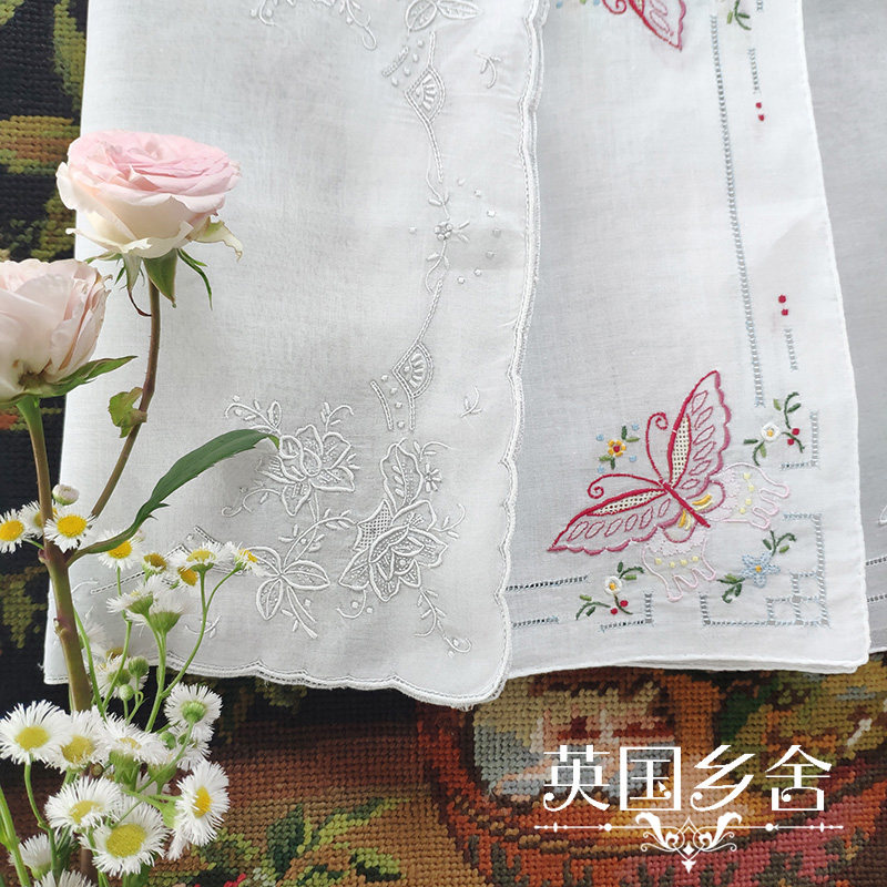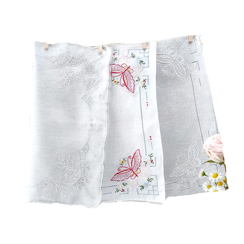Rose & Butterfly Pure Cotton Fine Yarn Full Artisanal Tidal State Embroidered Craft Handkera Gift hand letter Three in