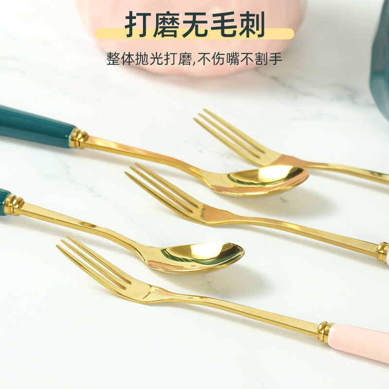 Leaves Fruit fork 4 branches (gold) leaves sweet spoons 4 branches (gold) leaves Fruit fork 2 sweet spoons 2 branches (gold) Porcelain Handle Fork 4 branches (green gold) Porcelain Handle Fork 4 branches (pink gold)