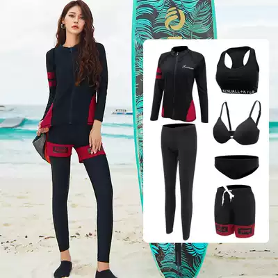 Korean swimsuit women's sports five-piece conservative two-piece belly cover, thin hot spring wetsuit, long-sleeved trousers, sunscreen