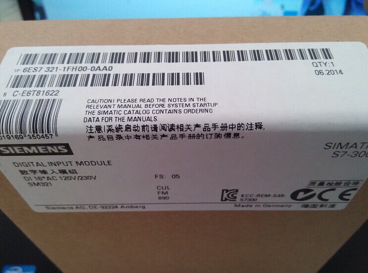 Siemens PLC 6ES7 6ES7 321-1EL00 1FF01 1FH00-0AA0 1FH00-0AA0 Volume Input