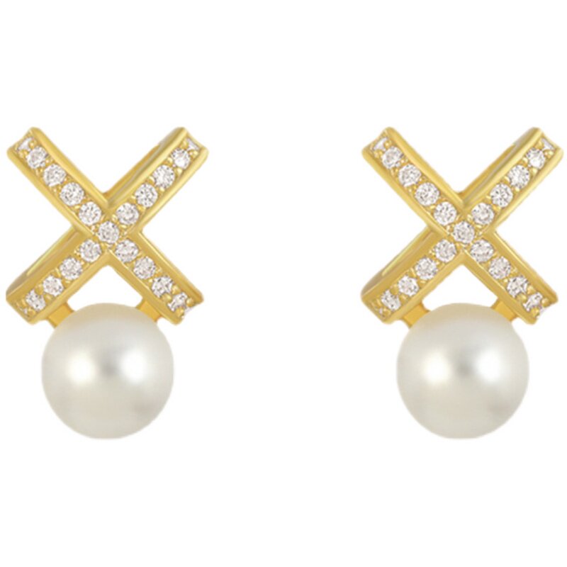 Cross Pearl Ear Nail S925 Silver Needle Korea Temperament Woman Small Earrings 2021 New Wave Lukewarm Wind Ear Accessories