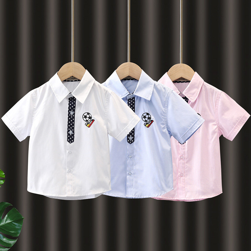 Child Short Sleeve Shirt Summer Style 2022 New CUHK Boy Boy Pure Cotton White Shirt Boy Clothing Girl Shirt Blouse