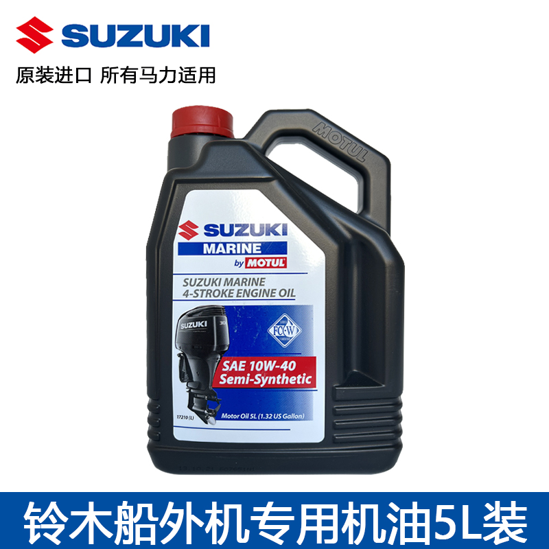 Suzuki 4-stroke engine oil (10W40 5 liters) Semi-synthetic four-stroke V5000 (10W40 1 liters) Four-stroke V5000 (10W40 4 liters) Four