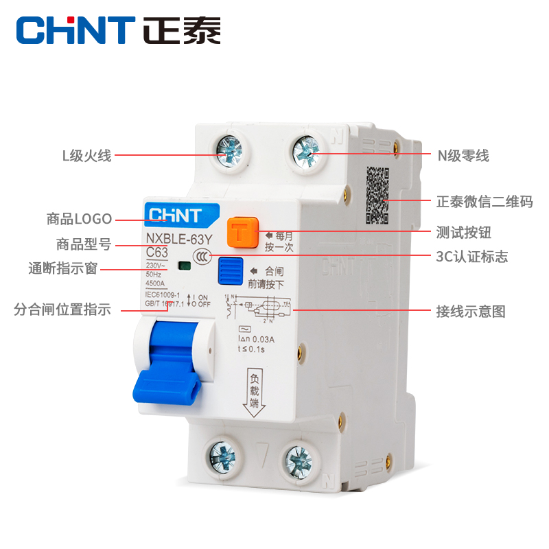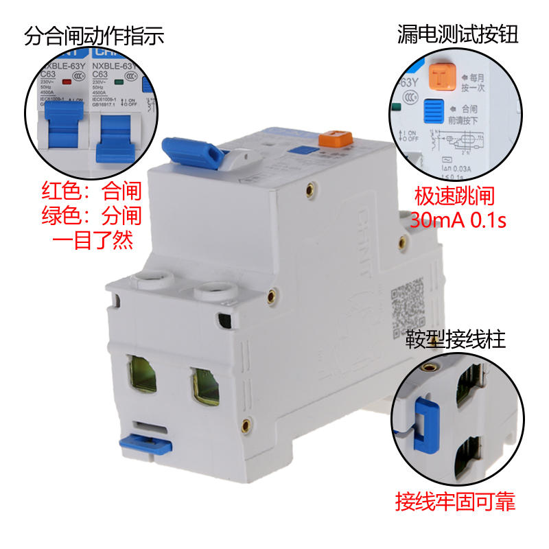 CHINT Leakage protector 1P N Air switch with leakage 32A40A 63A occupy 2 positions NXBLE-63Y