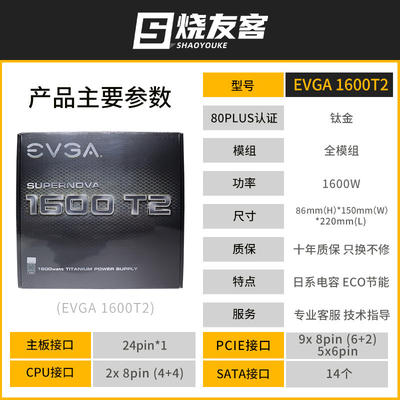 EVGA 1600W 2000W G T2 fulltime capacitive ten-year warranty titanium alloy full module power supply