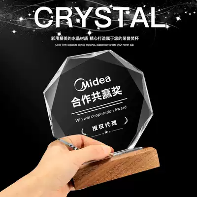 Personality customization Creative solid wood design New trophy custom crystal medal Free lettering honorary employee awards