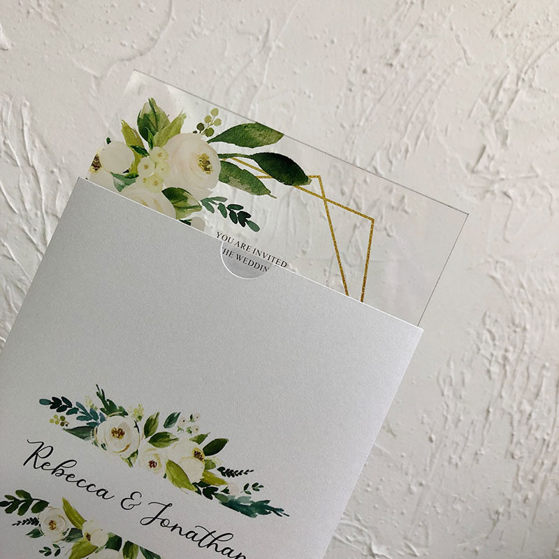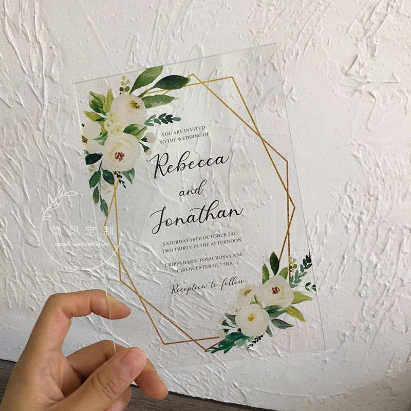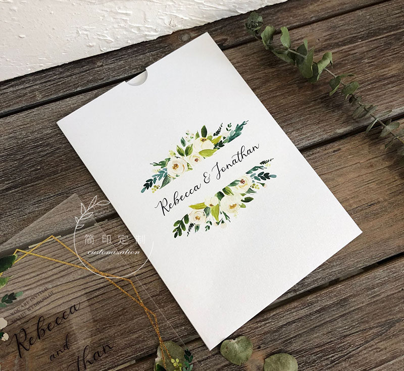 Mori small fresh watercolor green leaf wedding invitation simple acrylic wedding invitation letter European small fresh wedding invitation