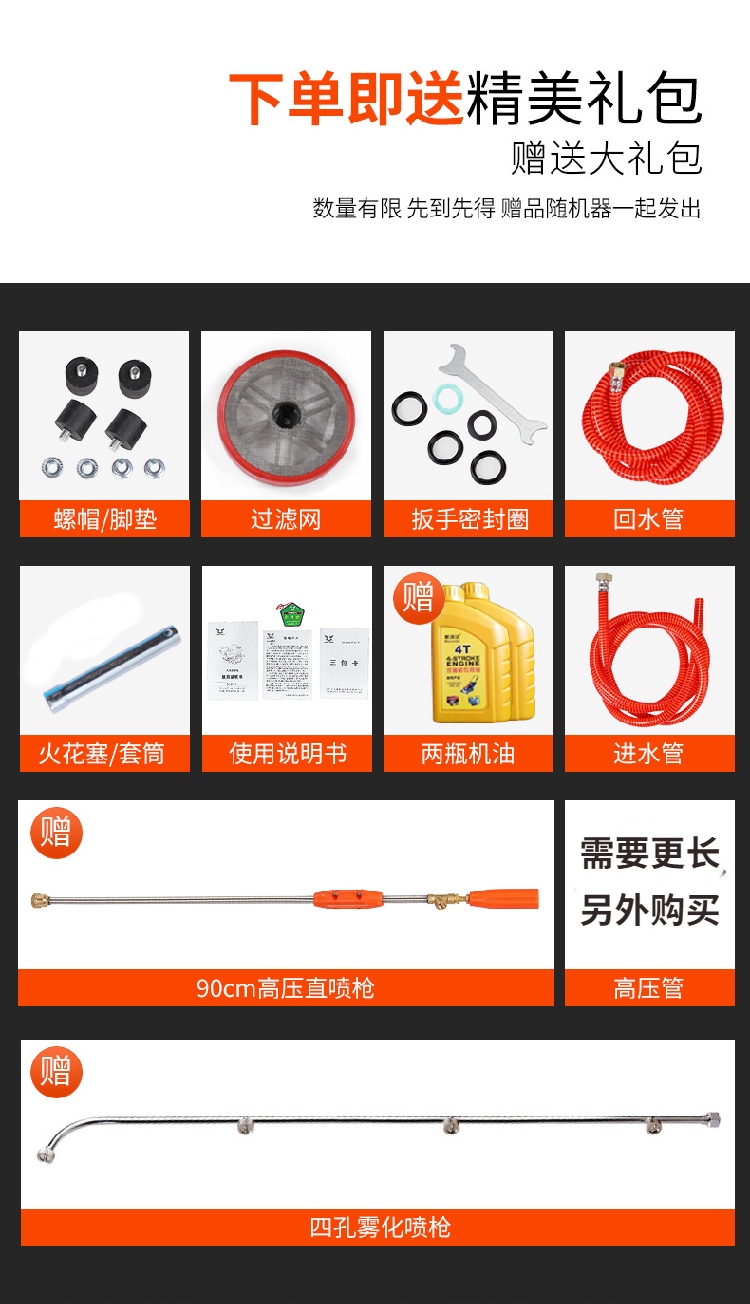 Zongshen direct connection model cream-free high-pressure fruit tree garden sprayer gasoline three-cylinder pump agricultural pesticide sprayer