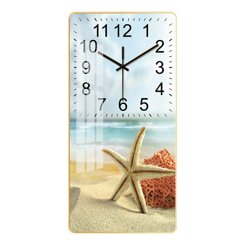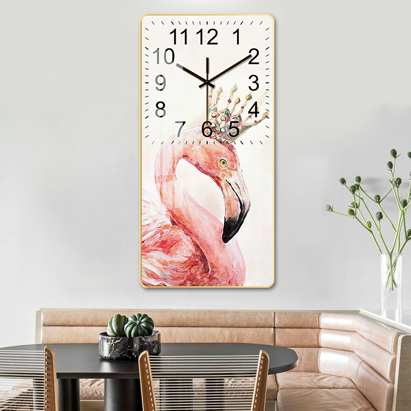 Nordic light luxury crystal porcelain painting wall clock home living room bedroom mute fashion large rectangular personality decorative painting clock