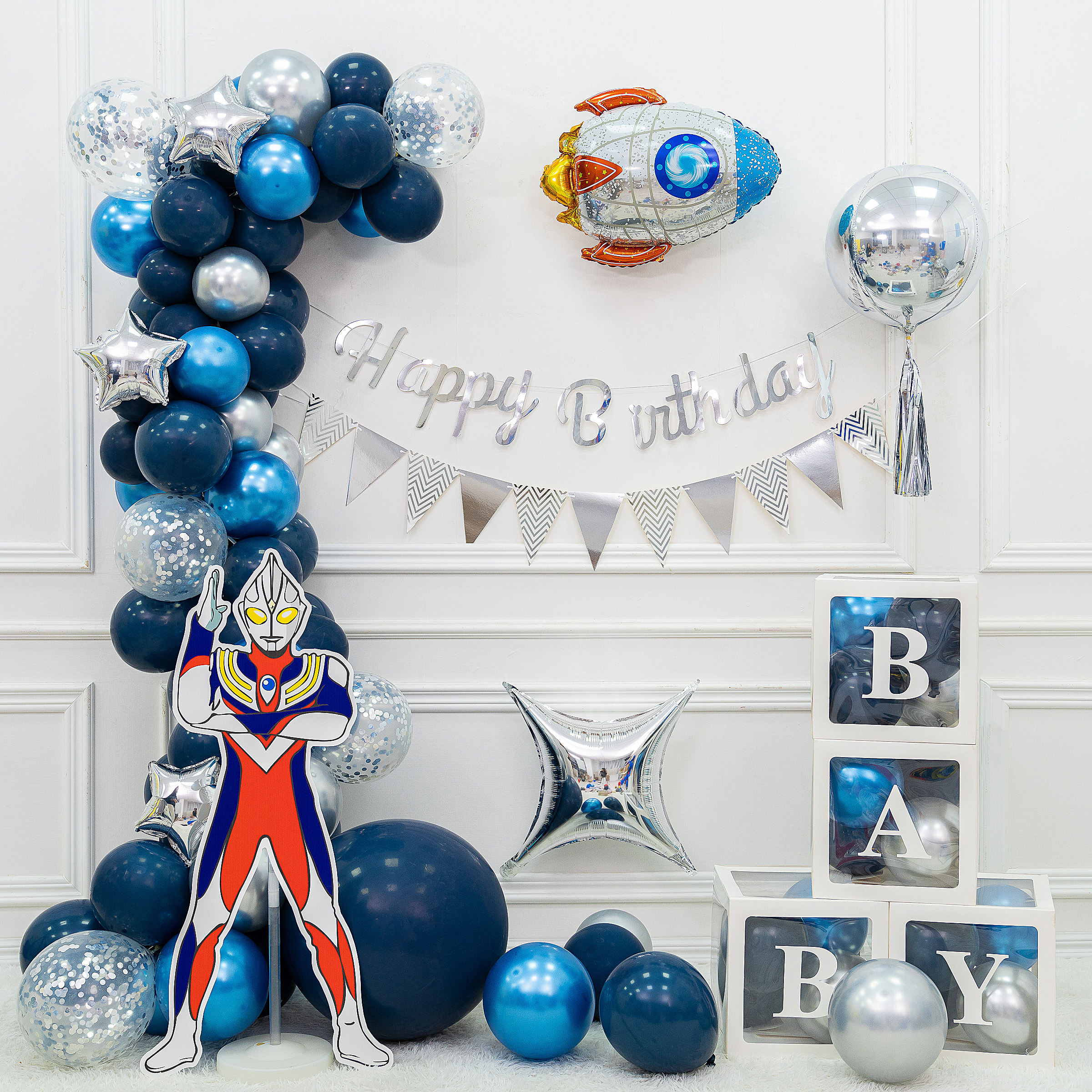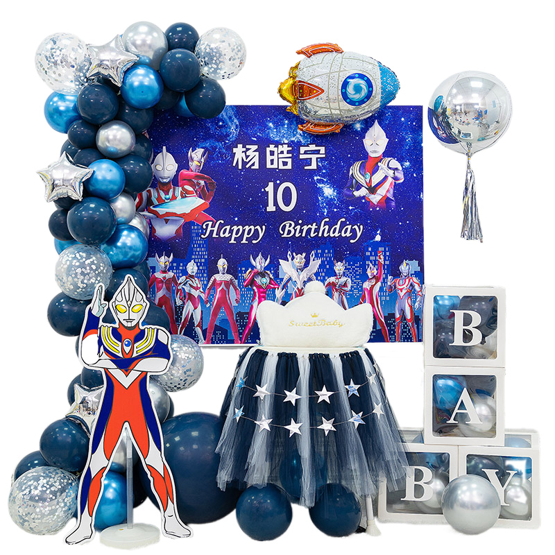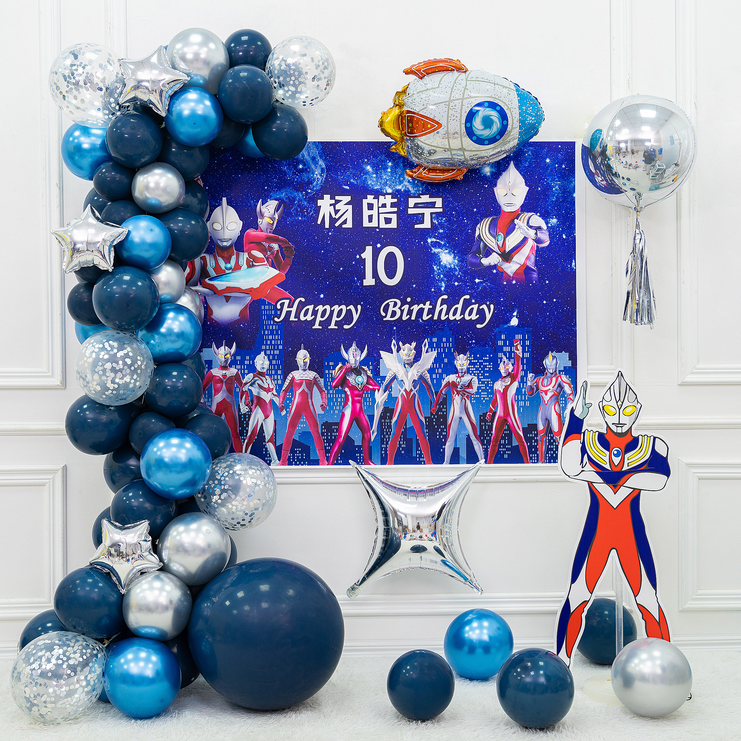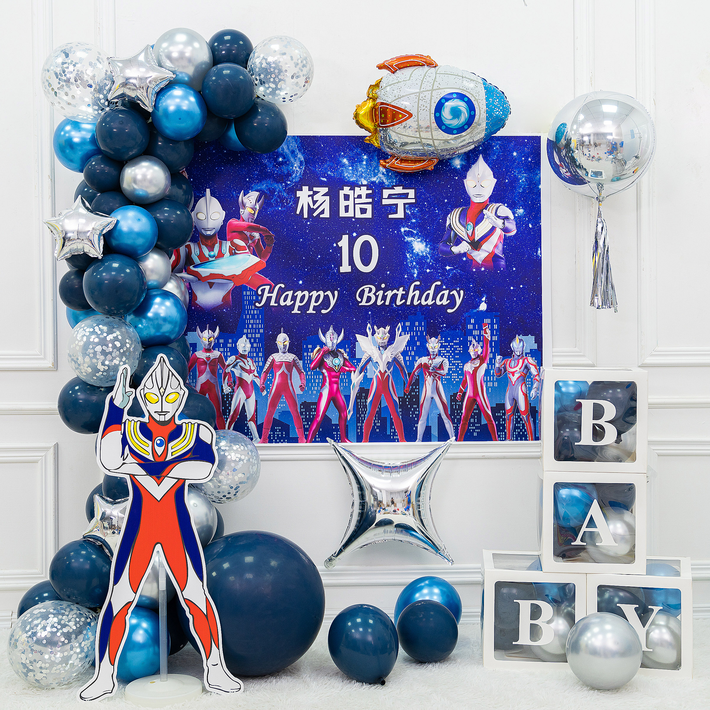 Ultraman theme birthday arrangement boy child 10th birthday decoration scene arrangement background wall balloon boy