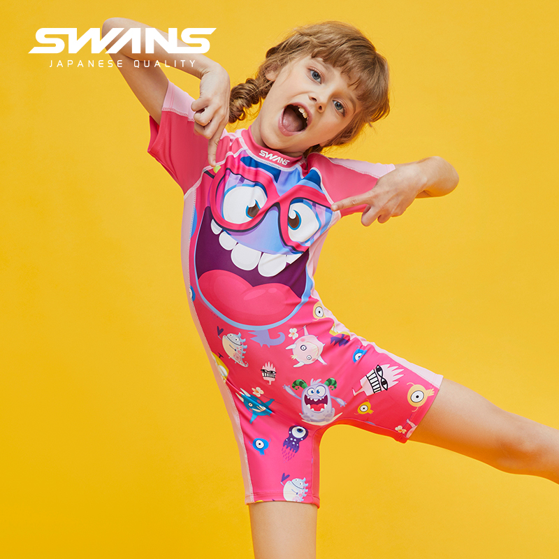 swans Children's swimsuit Girls boys one-piece swimsuit Baby middle and large children split swimsuit 2021 new summer