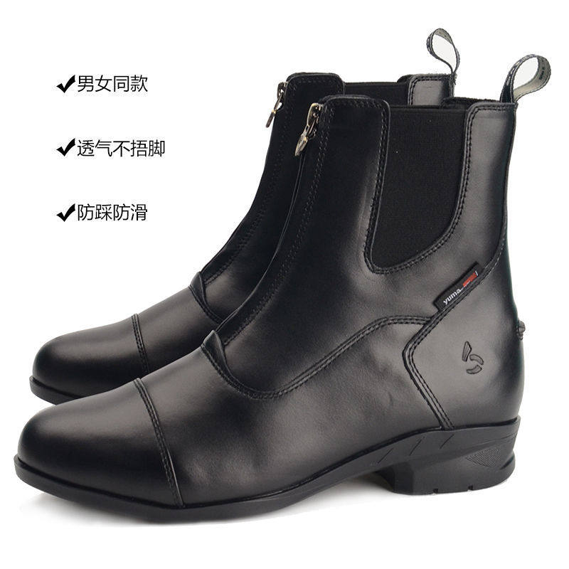High-end Imported Head Layer Bull Skin Equestrian Short Boots Low Heel for men and women Front Zipper Genuine Leather Rider Horse Boots Equestrian competition-Taobao