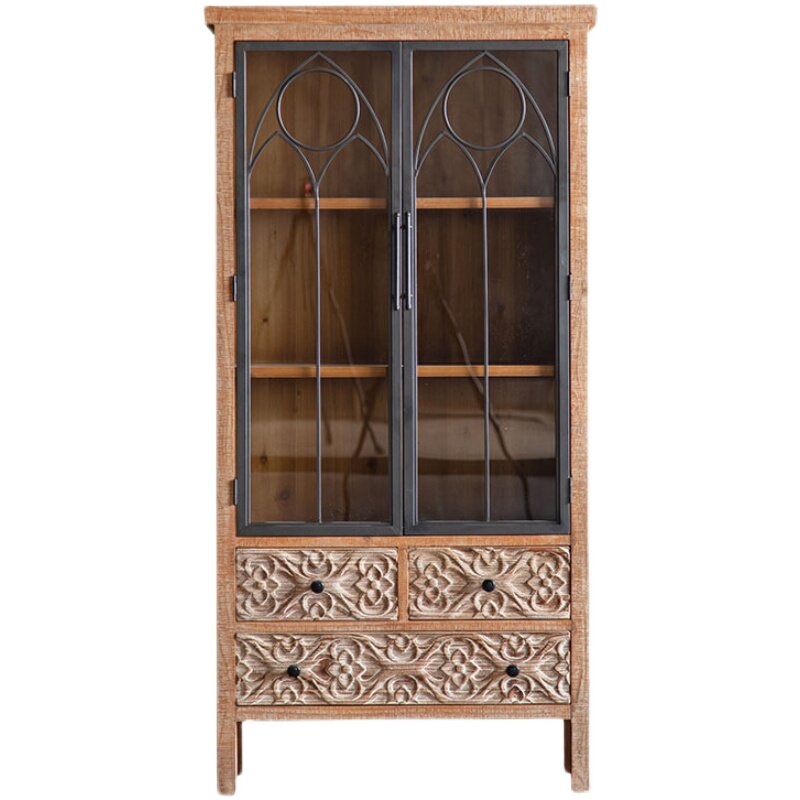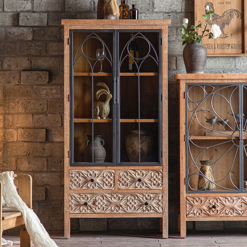 Industrial Wind Hyun Guan Cabinet Solid Wood American Countryside Retro Carved Lace Cabinet Iron Art High Cabinet Living Room Leaning Against Wall Decoration Cabinet
