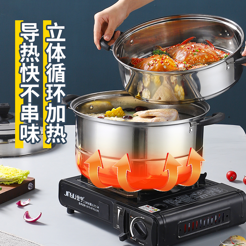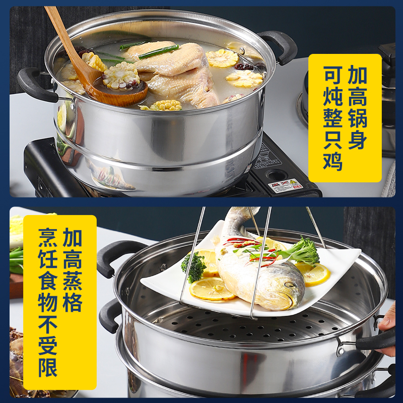 Thickened stainless steel steamer three-layer multi-function steaming fish large steamer Household large capacity induction cooker for gas stove