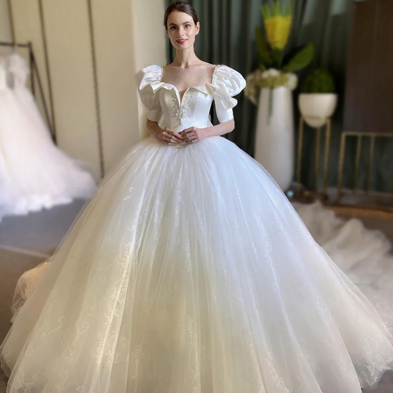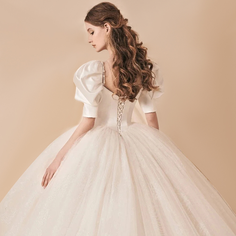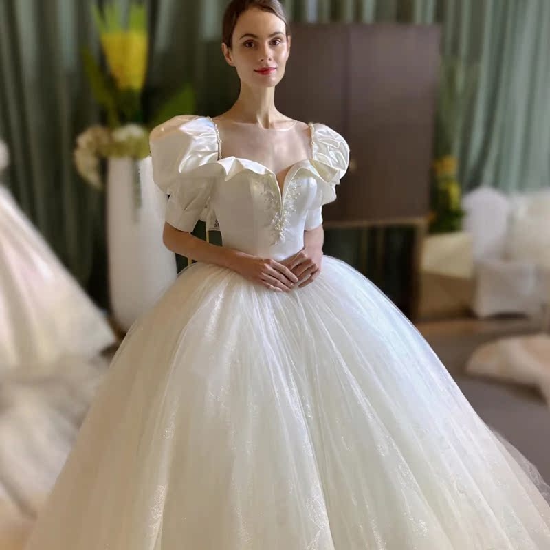 French satin light wedding dress 2021 new summer bride court style main yarn high-end temperament trailing simple female