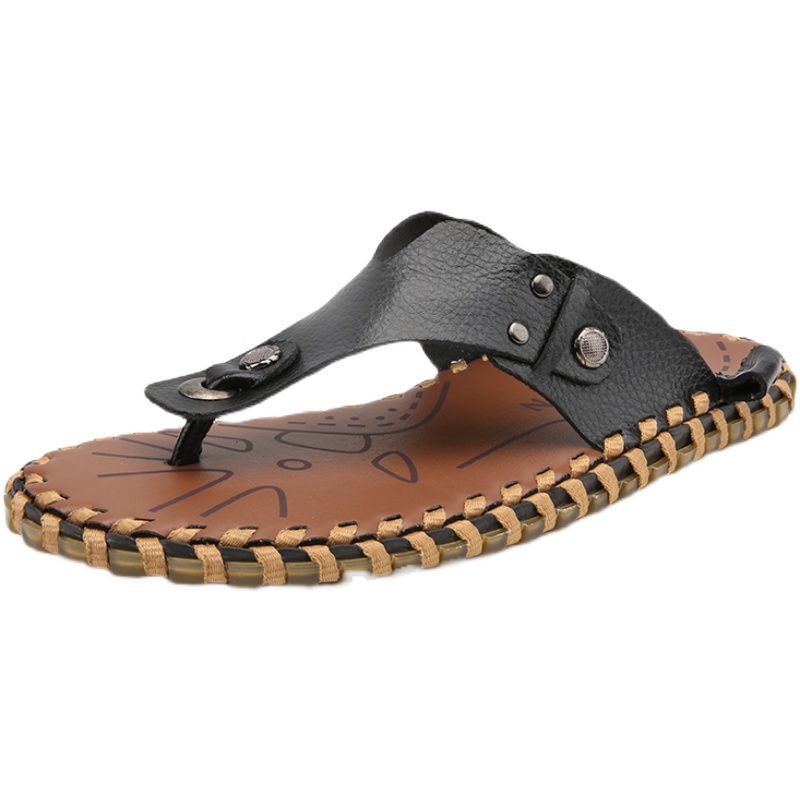 Tide brand men's leather slippers 2021 summer new soft bottom outer wear flip-flops non-slip beach sandals and slippers