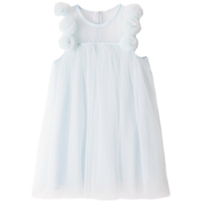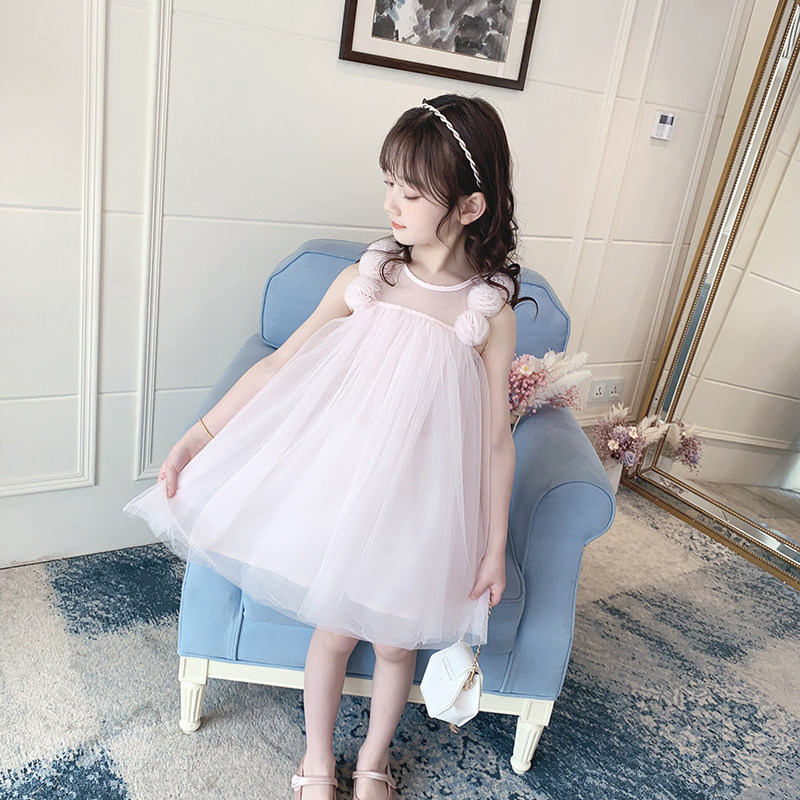 Girl Foreign Dress Pink Mesh Yarn Dresses 2022 New Fashion Polo Flowers Children Summer Dress Girl Fluffy Dress