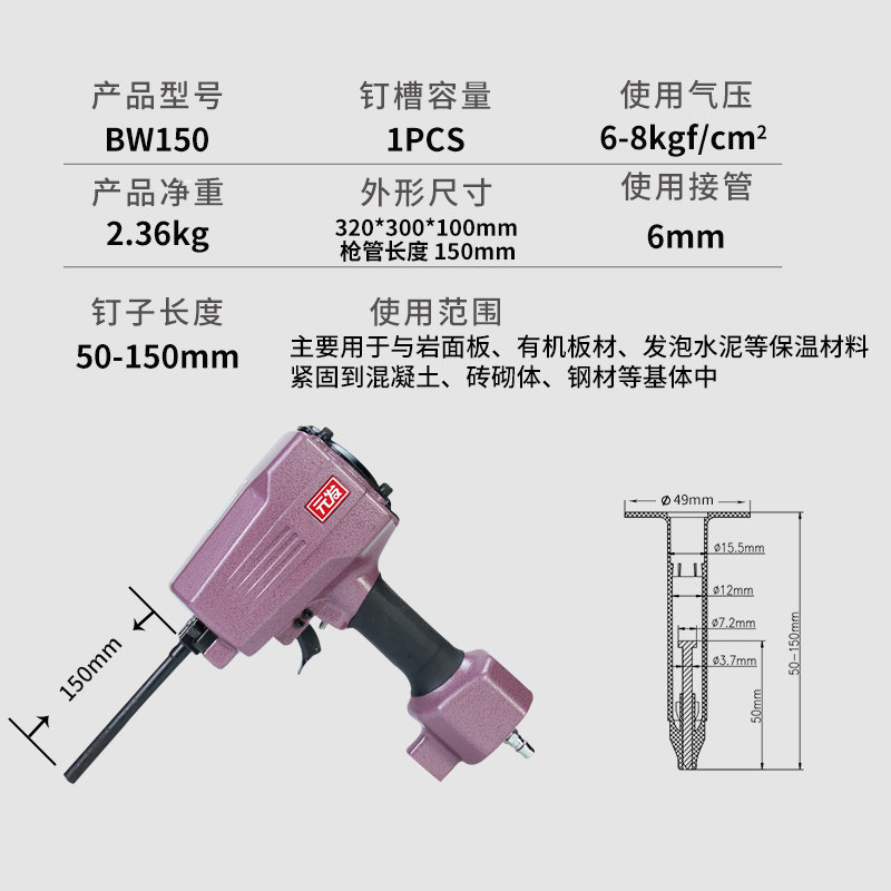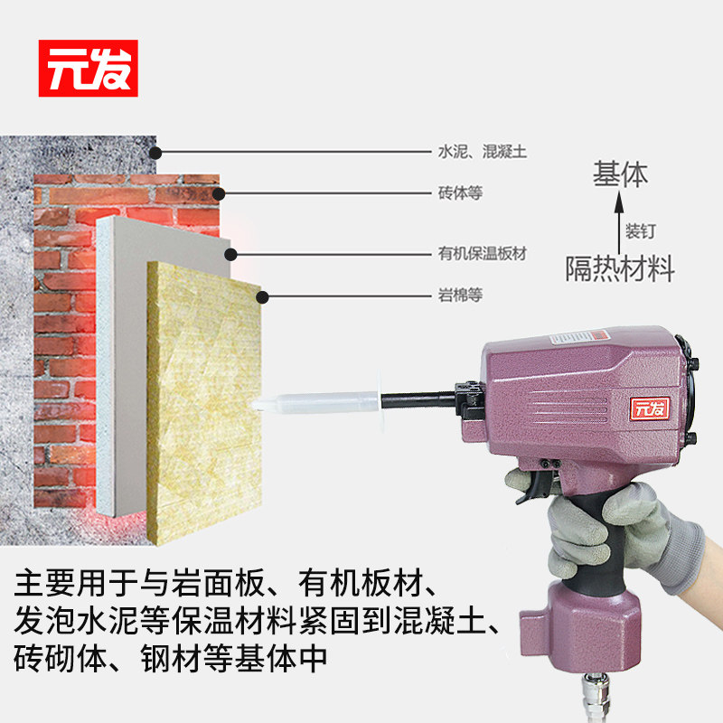 Yuan Fa gas nail gun BW150 external wall insulation nail gun Rock wool extrusion board Foam board Glass wool board nail gun