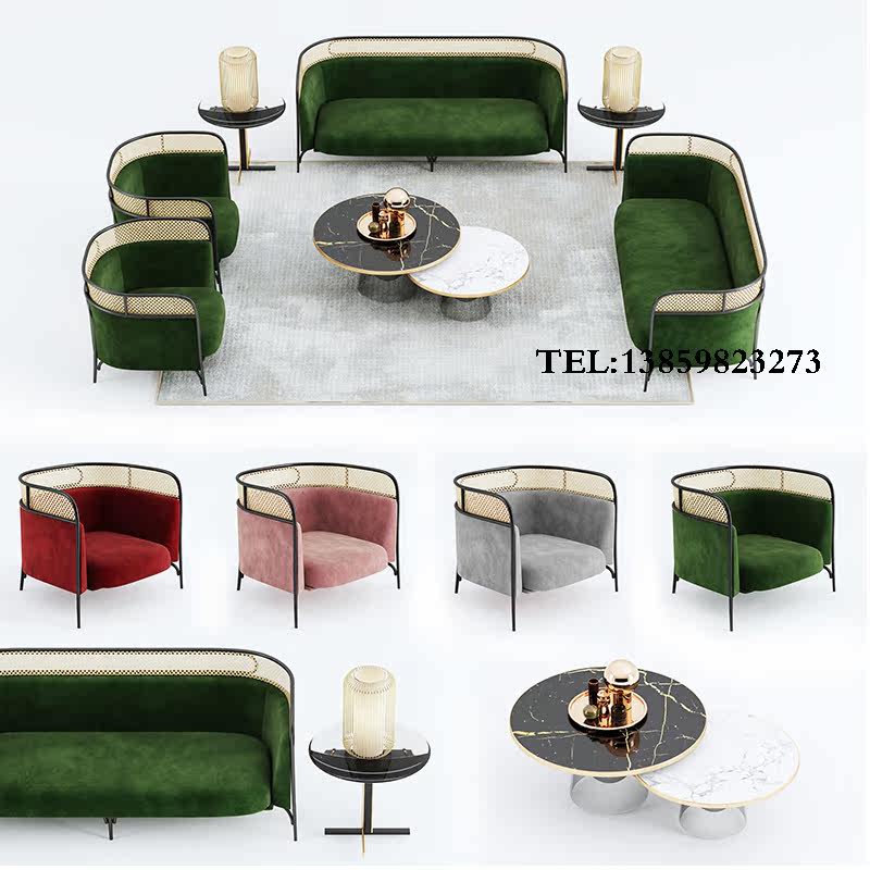 Post-modern hotel sales office negotiating reception leather art sofa new Chinese style single double solid wood rattan leisure chair