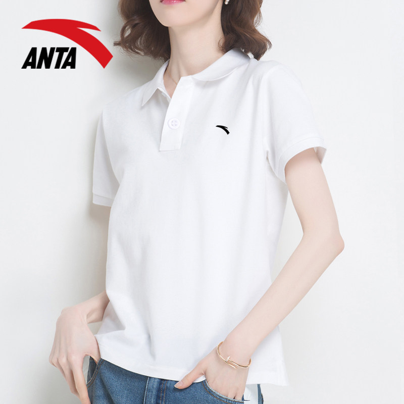 Anta short-sleeved polo shirt women's T-shirt official website flagship summer new breathable pink quick-drying lapel sports top