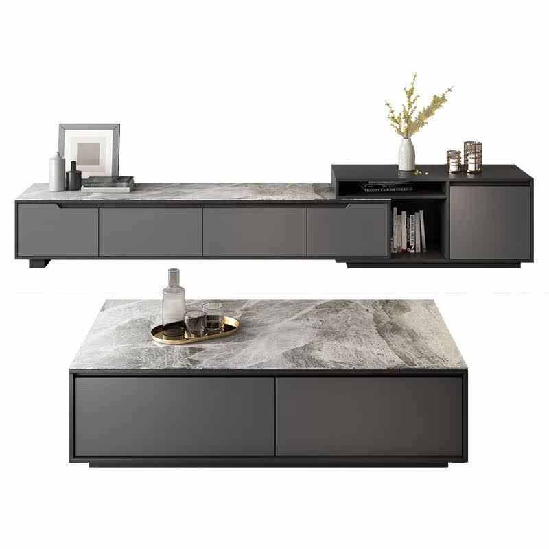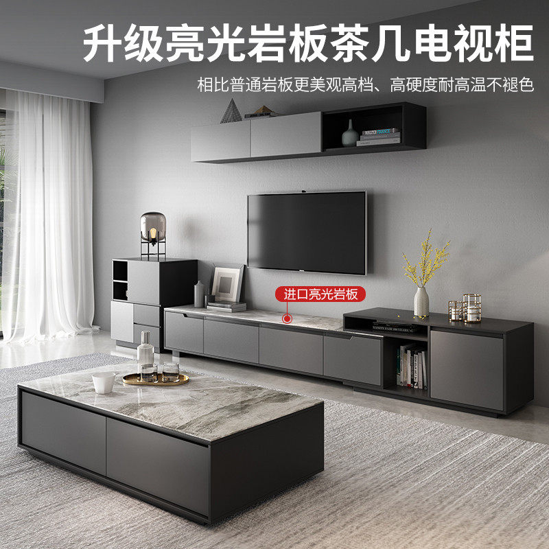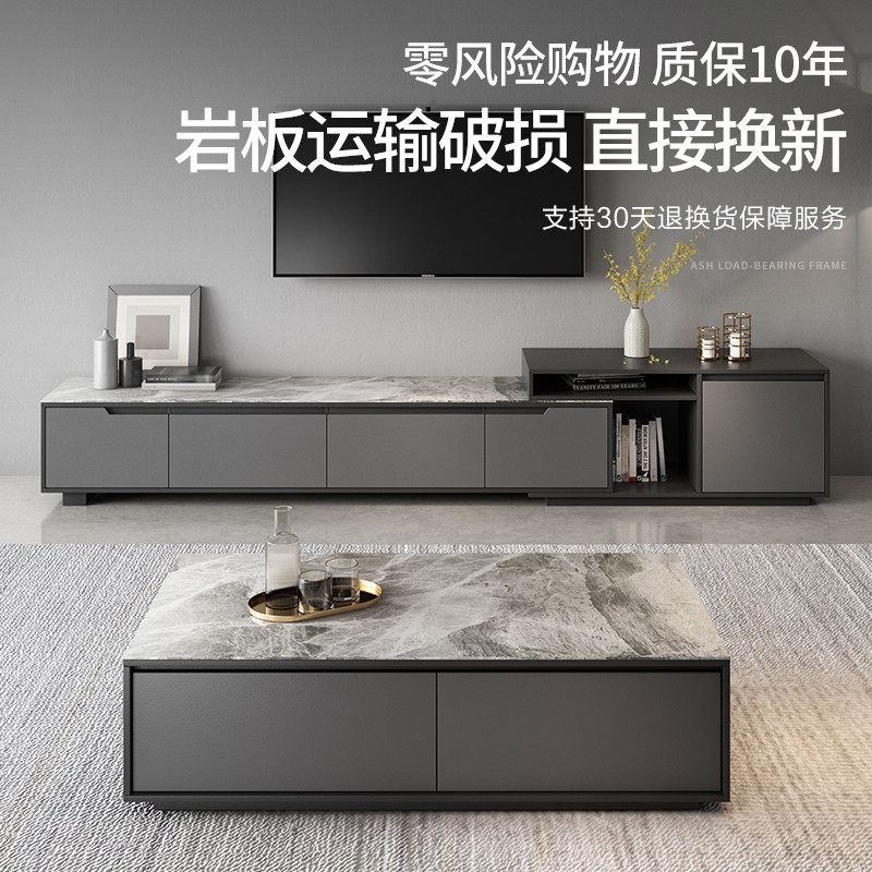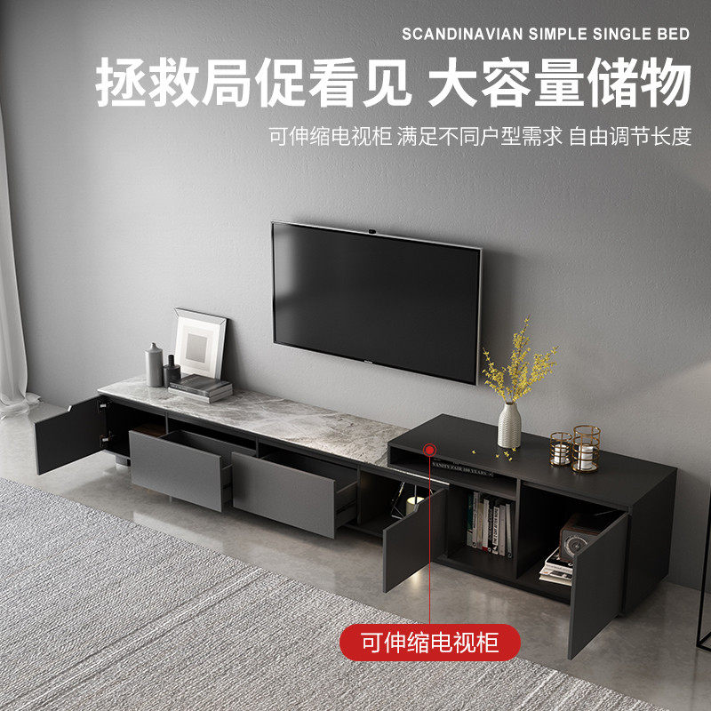 Telescopic TV Cabinet Side Cabinet TV Cabinet Table 1 table 6 chairs (Caesars grey light rock plate) telescopic TV cabinet tea table TV cabinet tea table A three-person-in-a-courtesary TV cabinet