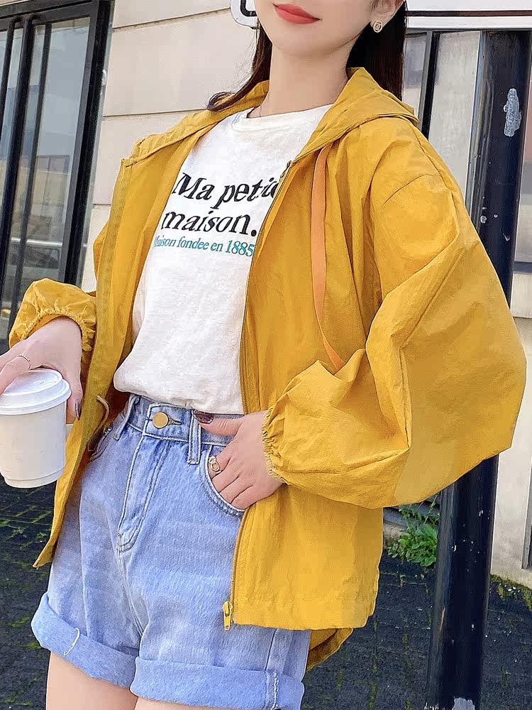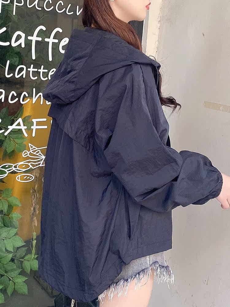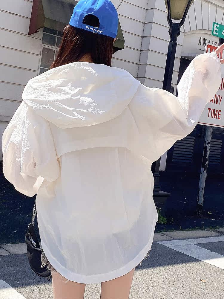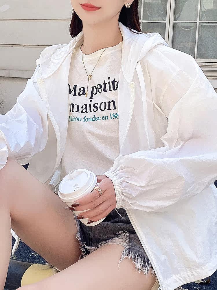 Summer sun protection clothing women's short hooded drawstring sun protection top loose all-match thin sun protection clothing 2021 new