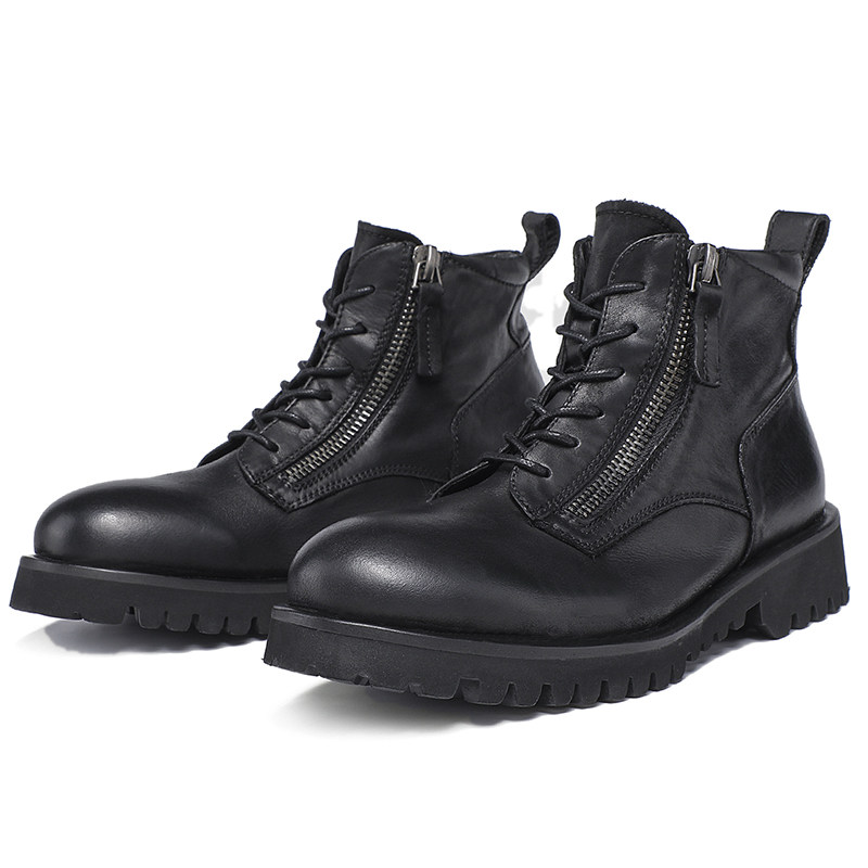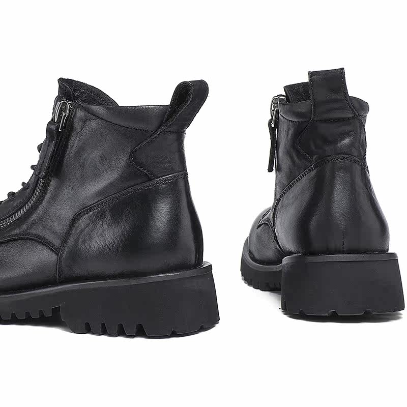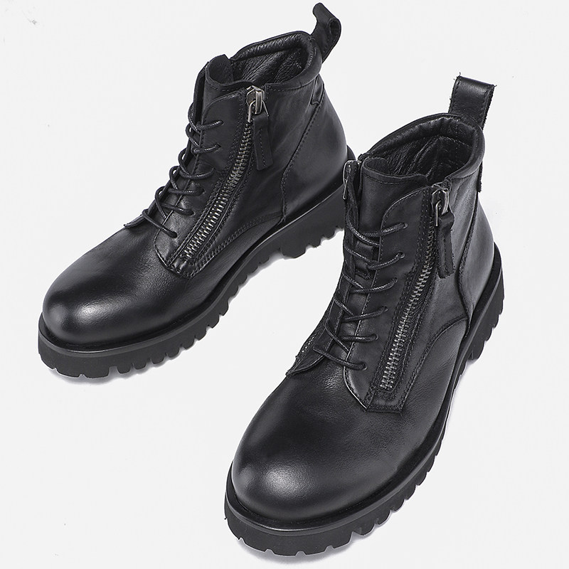Men's mid-tube martin boots men's boots British style high-top shoes men's leather tooling boots autumn and winter fleece warm men's boots