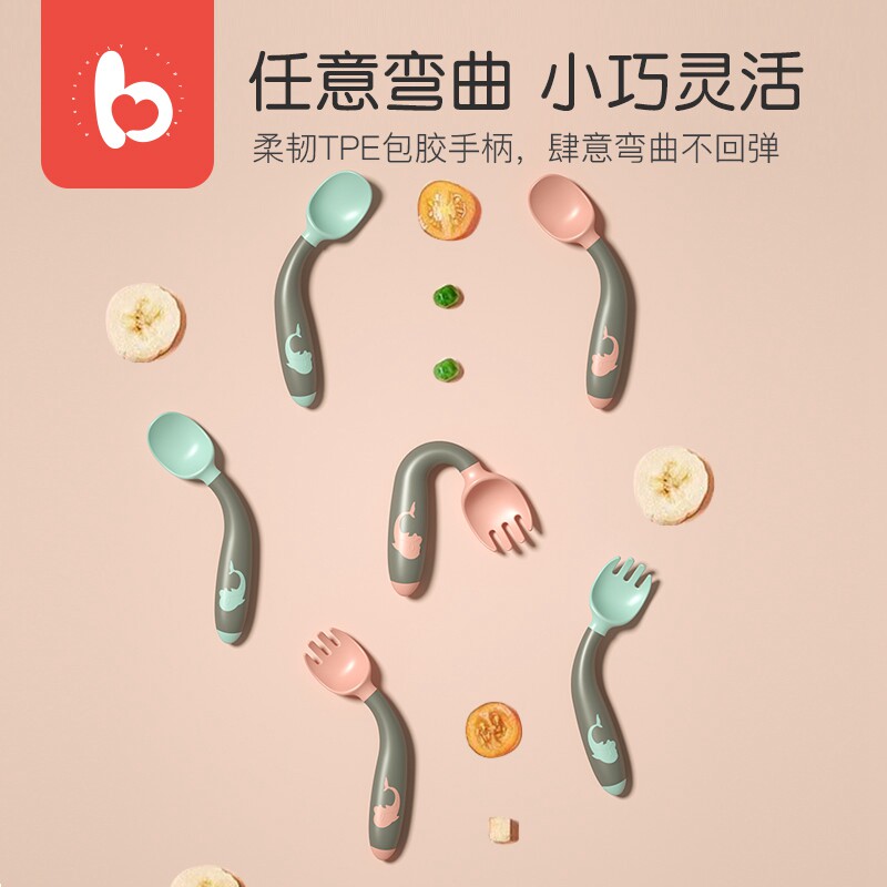 Baby spoon fork set baby learning meals training bending twisted spoon children supplementary tableware with container box