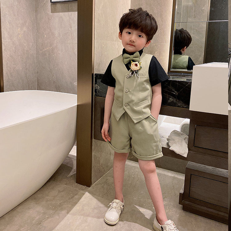 Green vest shorts two-piece white vest shorts two-piece blue vest shorts two-piece black vest shorts two-piece green vest shorts shirt three-piece white vest shorts