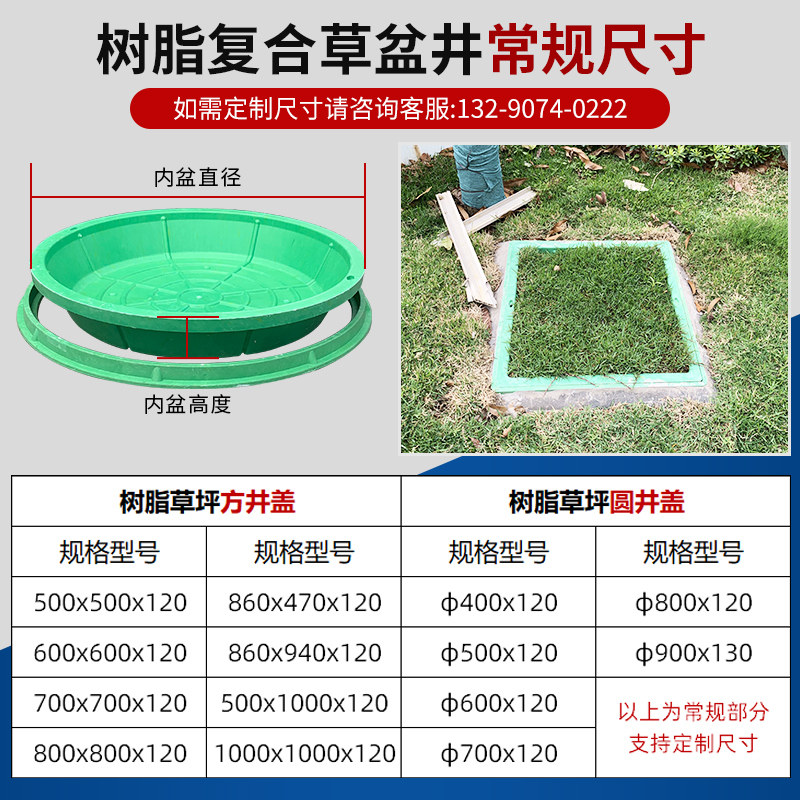 SMC FRP composite plastic lawn manhole cover greening invisible decorative grass planting concave square round grass basin manhole cover