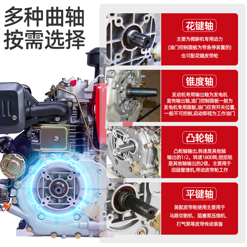 173F-hand start-spline shaft 173F-electric start-flat key shaft 173F-electric start-spline shaft 178FA-hand start-flat key shaft 178FA-hand start-flower