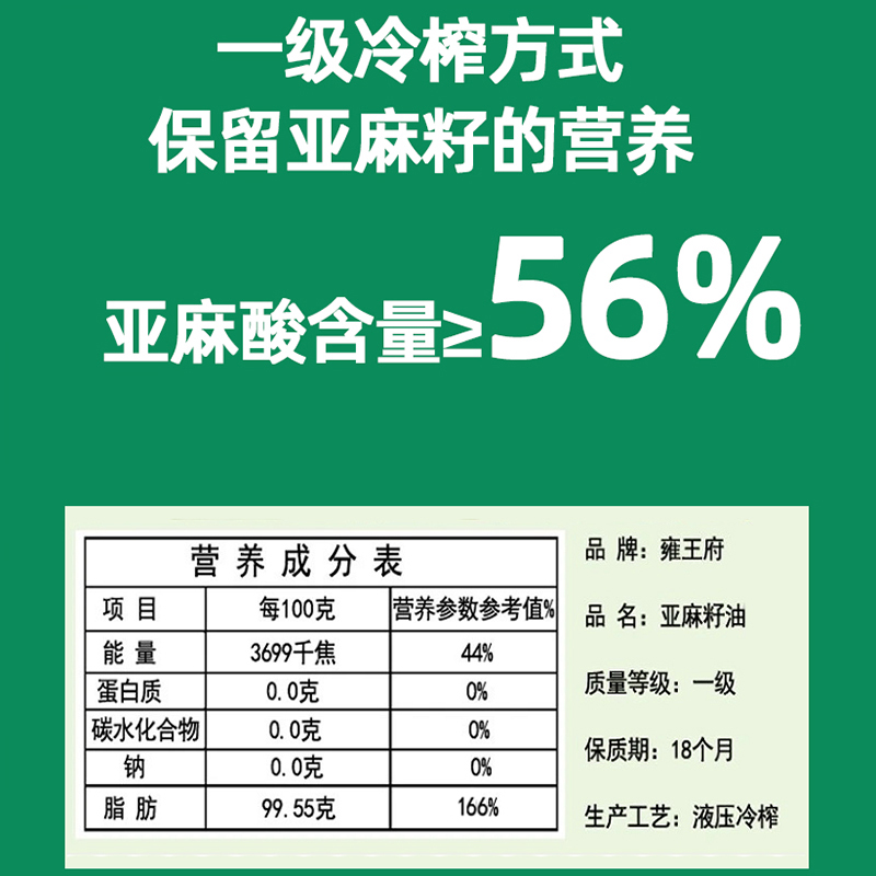 Yongwang Fu non - genetically modified 500ml flaxseed oil grade 1 cold pressed non - reconciled oil for adults and children with edible oil