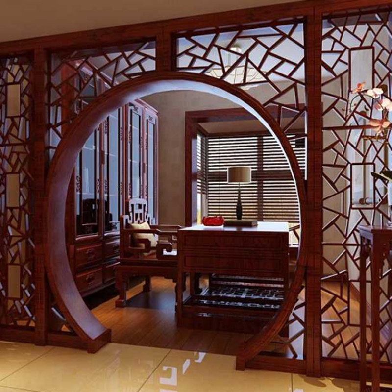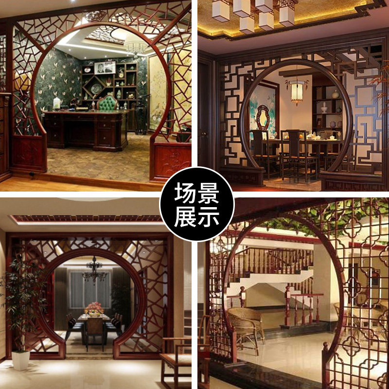 Dongyang wood carving new Chinese antique wood flower moon door moon cave bo ancient shelf living room partition decoration background wall