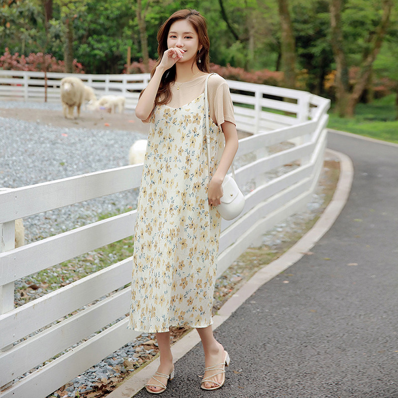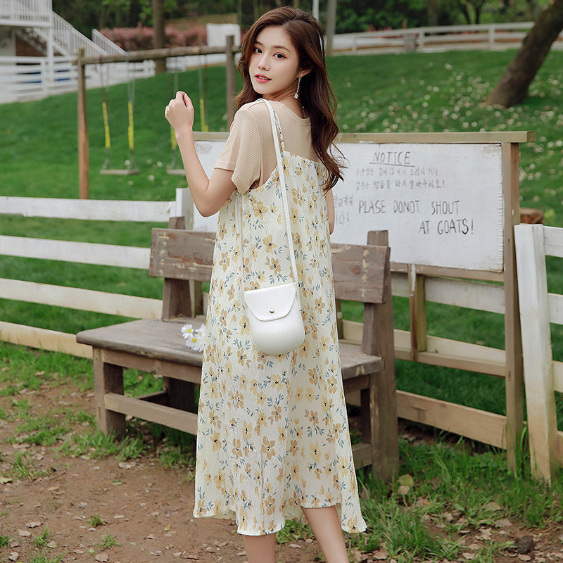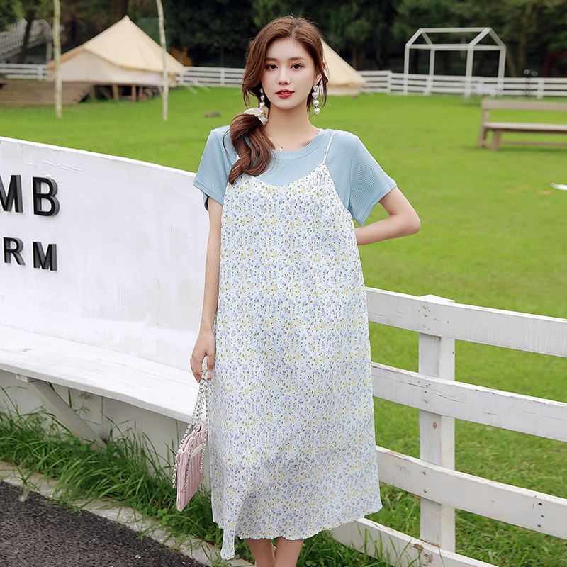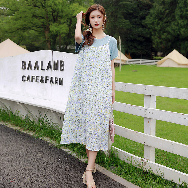 Jingqi pregnancy dress Summer suit Fashion loose small floral long dress Temperament small fresh age-reducing skirt tide