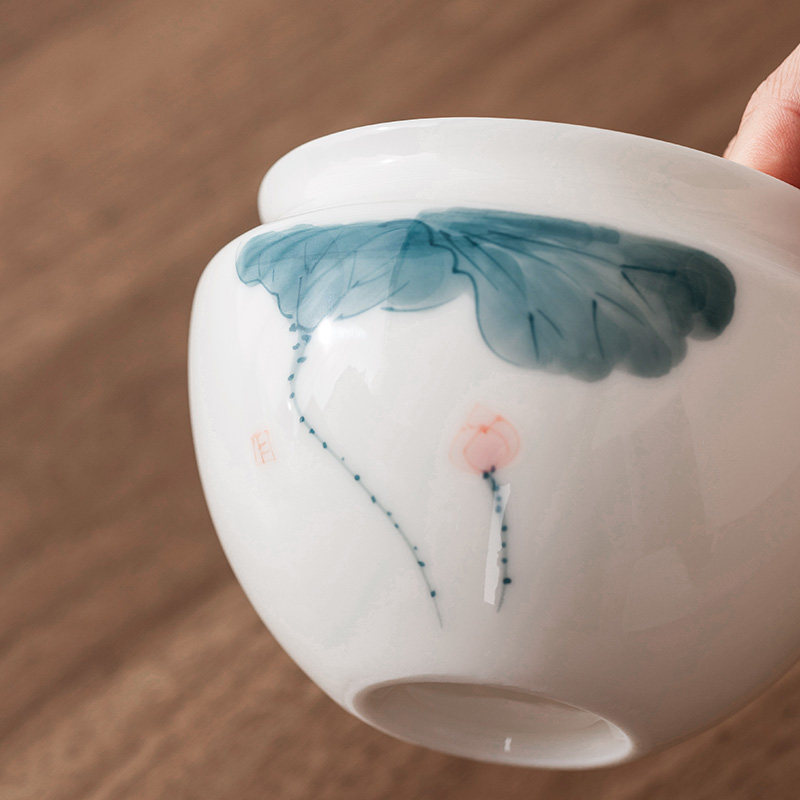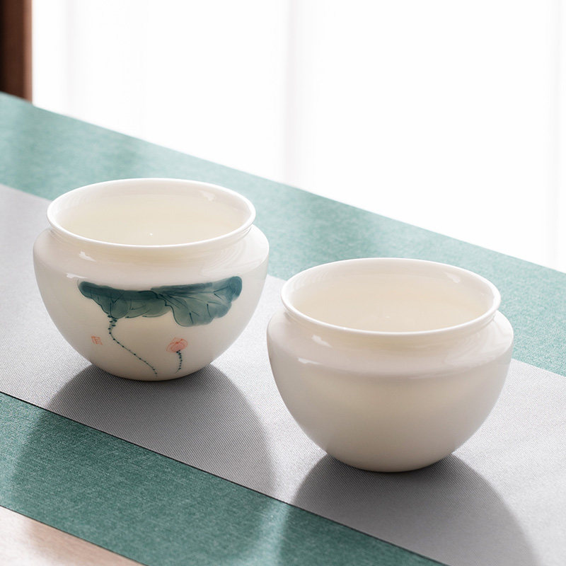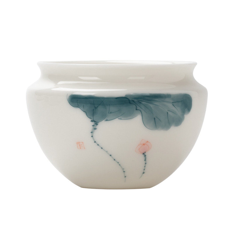 Slow-tone goat-fat jade hand-painted white porcelain small tea-washed ceramic minimalist single-cup water-wash cup Kung Fu Tea Road Accessories Jianshui