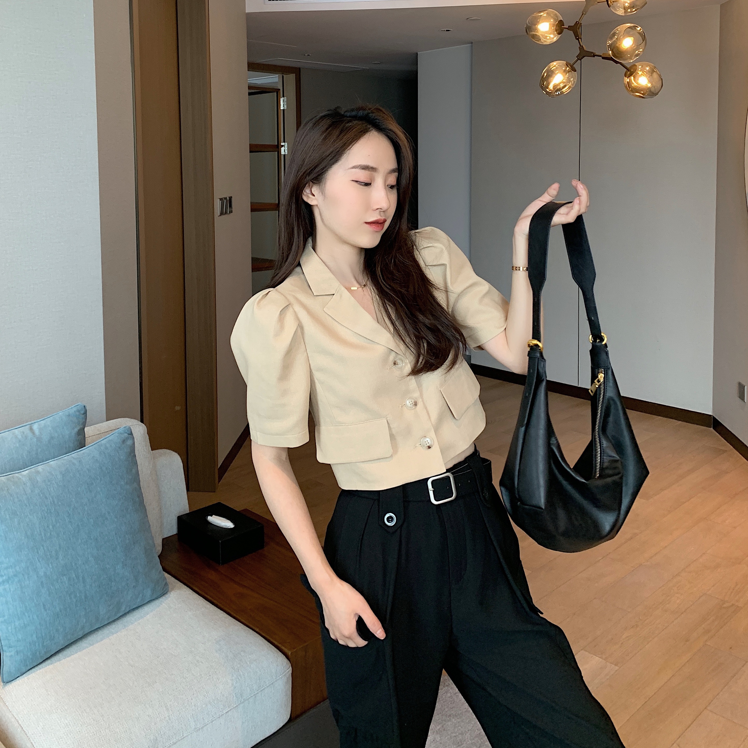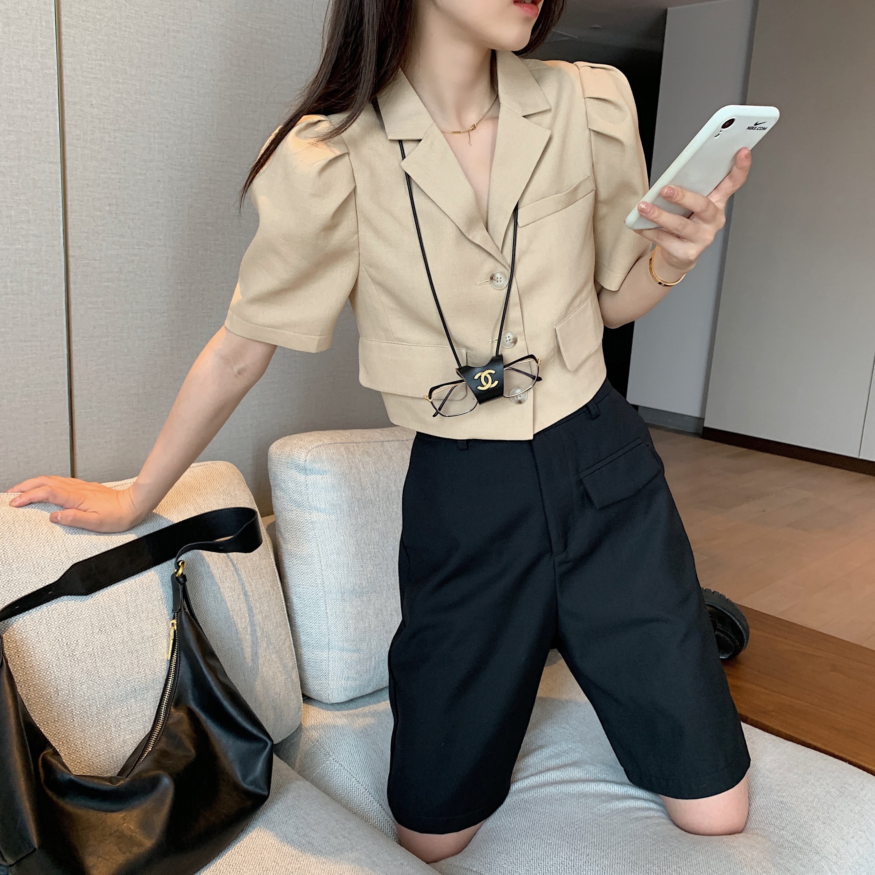 French niche short sleeve shirt woman summer new 2022 bubble sleeve shirt senior chic coat