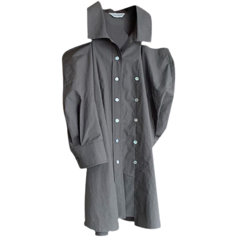 Minimalist Little crowddesign Front Door Flap double-row buttoned with multiple series Flaws Shoulders Two Wear 100 Lap Shirt Woman Temperament Blouse