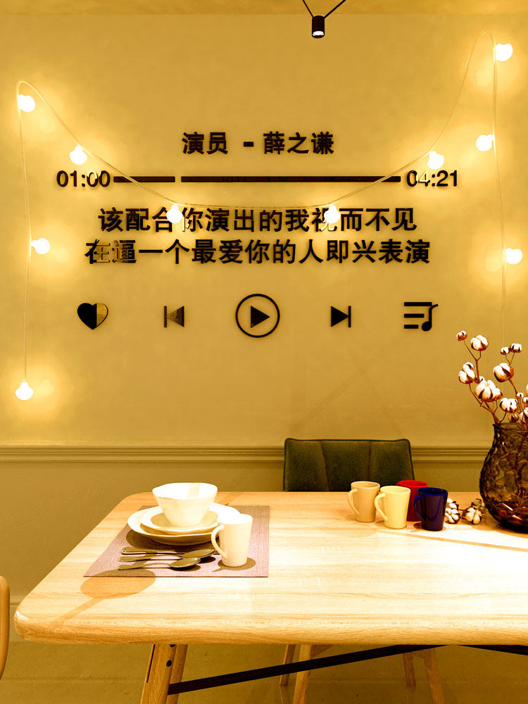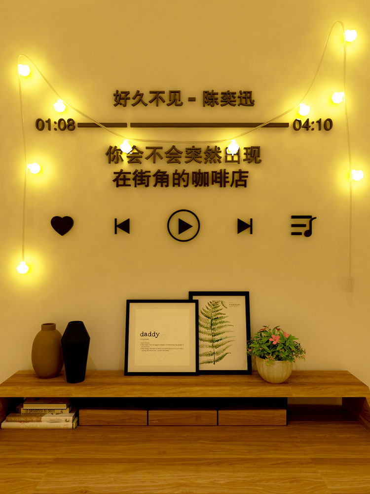 3D stereo wall with the lyrics creative wallpaper bedroom TV wall dormitory with lamp bedrooms background wall sticker