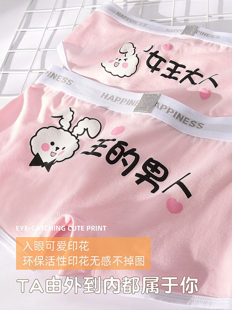 Couple's underwear cute pure cotton suit 2 bar pair send girlfriend cotton quality men's four-corner pants cartoon sweet and beautiful print