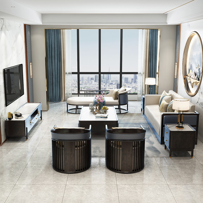 New Chinese style solid wood sofa combination modern minimalist living room villa size light luxury high-end solid wood furniture