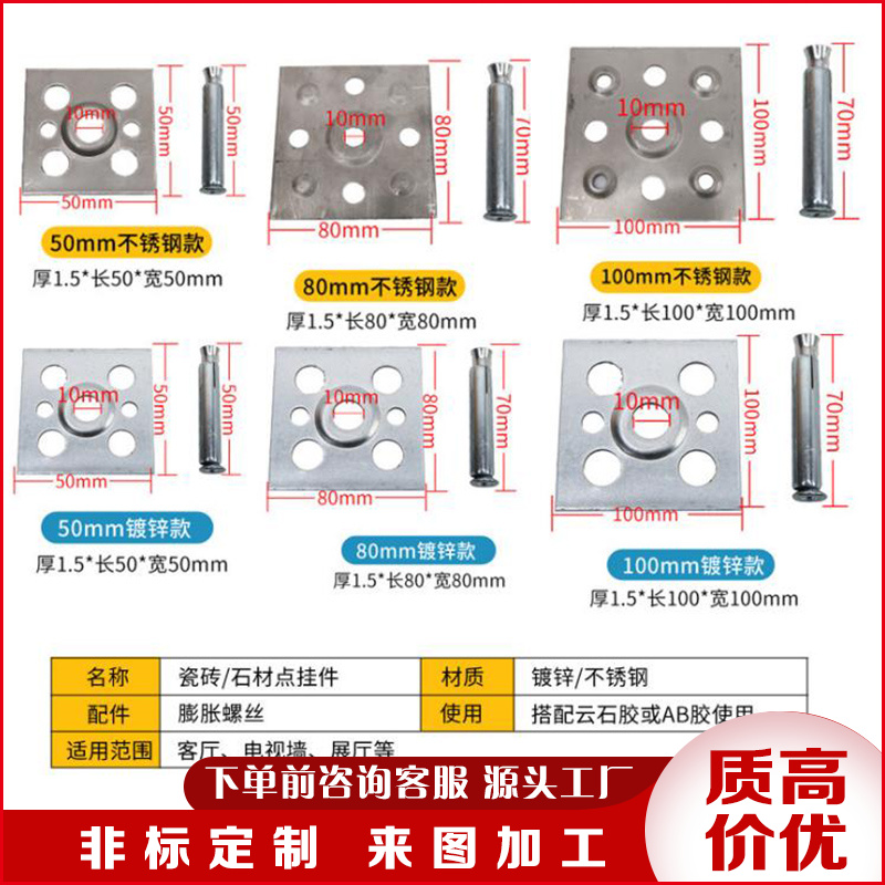 Ceramic tile dry pendant stainless steel fixed anti-falling iron sheet AK47 curtain wall marble TV background wall point hanging piece