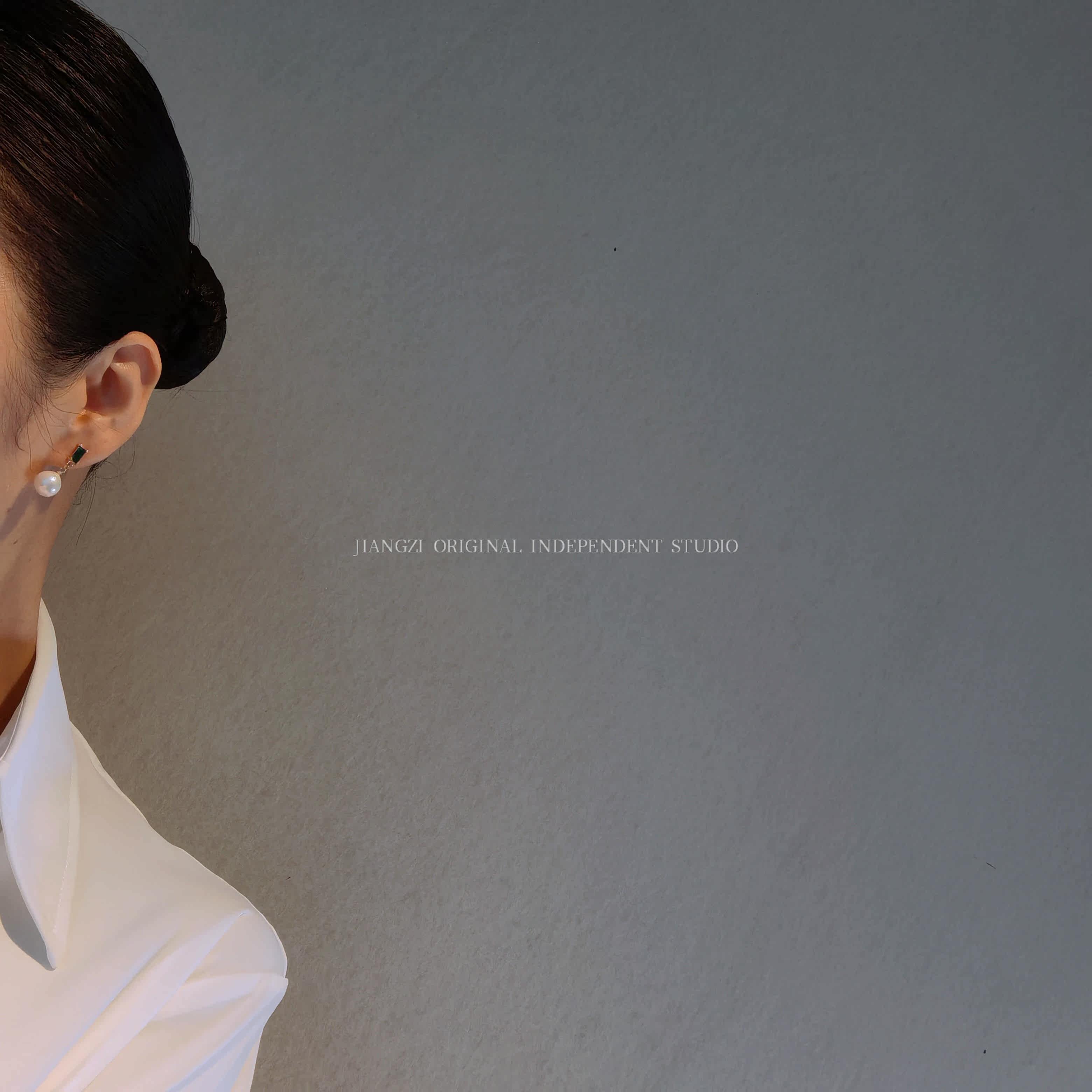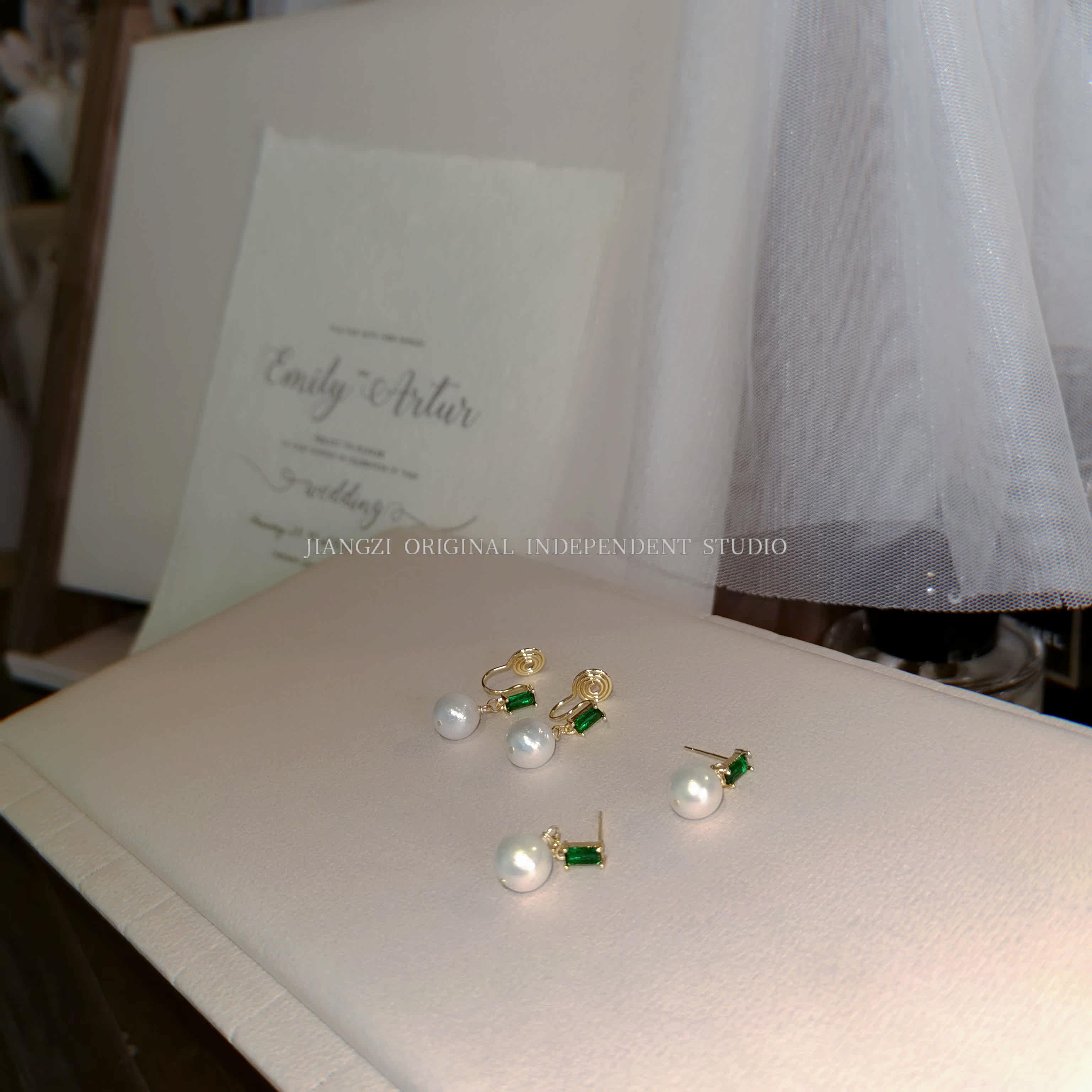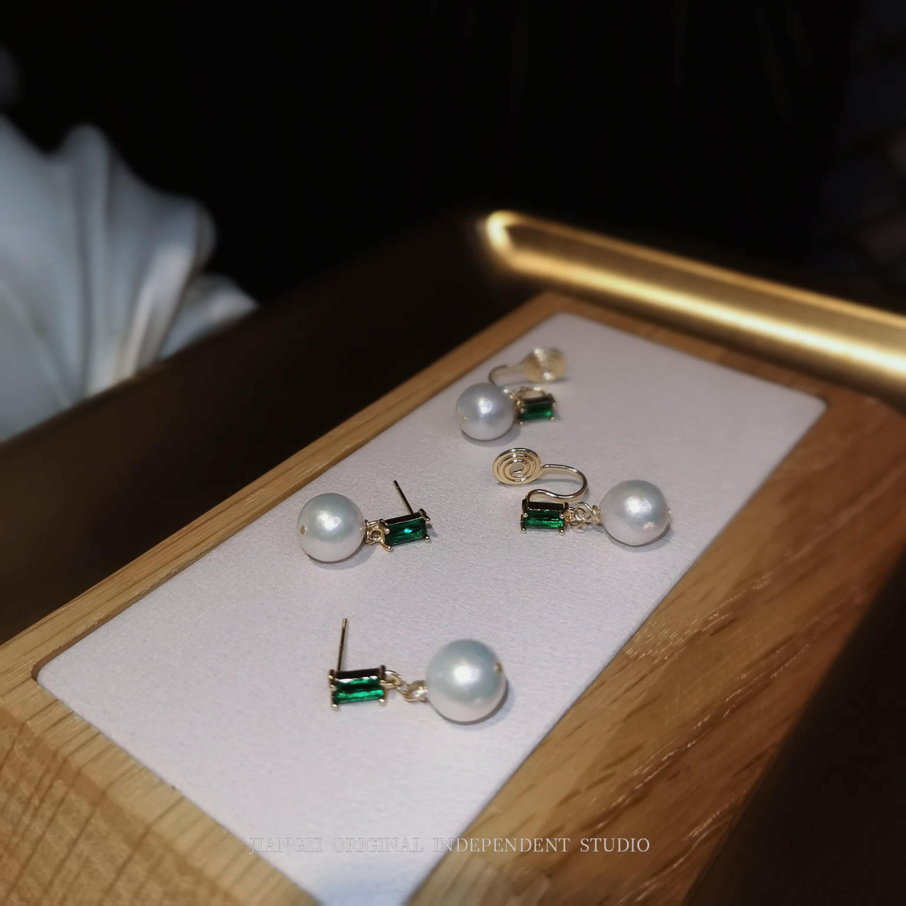 JZ STU ancestor green zircon 14K gold natural near round baroque high quality pearl temperament ear pin ear clip