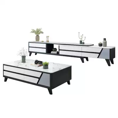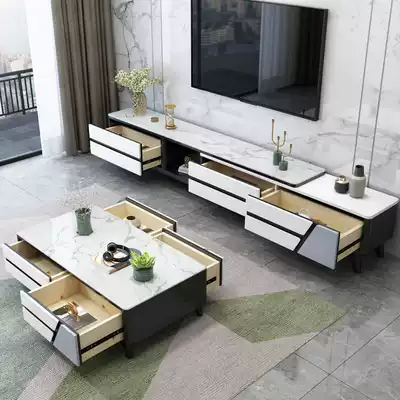 TV cabinet coffee table combination modern simple light luxury fashion living room tempered glass marble retractable small apartment