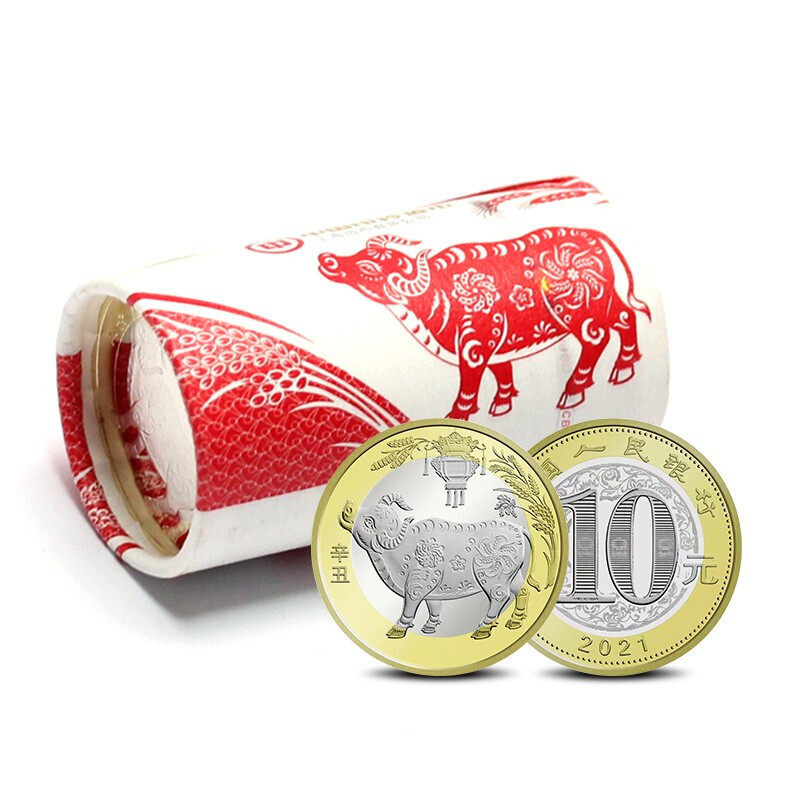 2021 Bull's Year Zodiac Commemorative Coin Whole Roll of Bull Coins 20 Original Bull Coins Sent for Protection Bucket
