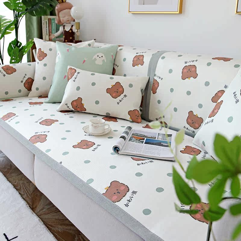 Summer ice silk sofa cushion non-slip simple cartoon mat cushion summer sofa cover towel cover cloth custom